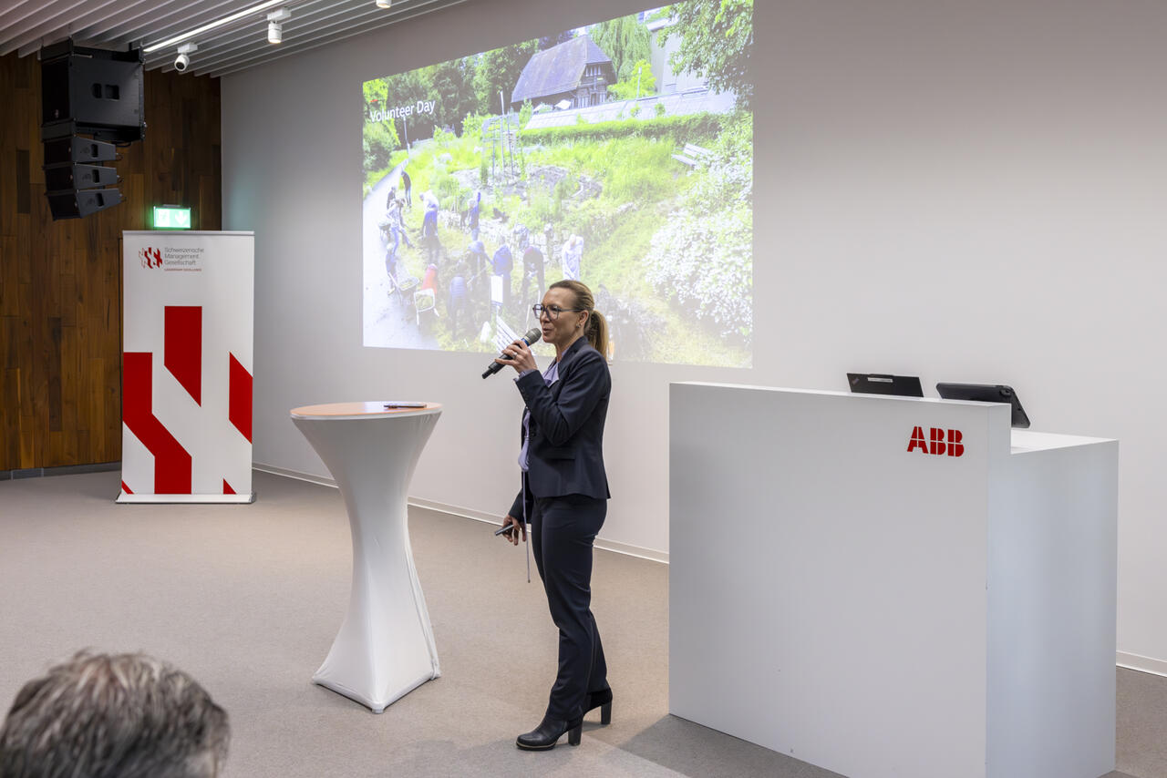 | 15.00 | Begrüssung durch Markus Streckeisen, Präsident SMG Doppelreferat von Nora Teuwsen, Vorsitzende der Geschäftsleitung ABB Schweiz und Mike Bamberger, Leiter Traction Sales, ABB Schweiz: «Erfolgsbeispiele Schweizer Wettbewerbskraft» Referat von Nicole Kamm Steiner, Leiterin Human Resources, ABB Schweiz: «Our People & Culture» Referat von Till Ruemenapp, Leiter Research Center, ABB Schweiz: «Einführung in das Forschungszentrum ABB Schweiz» |